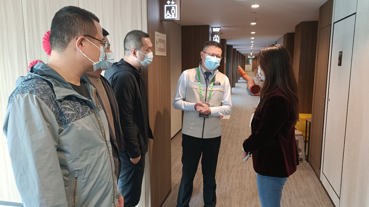 新年伊始,萬象更新。1月2日,深圳市人才集團(tuán)副總經(jīng)理張蕾、深圳市對外服務(wù)集團(tuán)總經(jīng)理侯亞敏在深圳灣業(yè)務(wù)部會(huì)展酒店項(xiàng)目組的陪同下,來到了灣區(qū)會(huì)展酒店參觀考察。在灣區(qū)會(huì)展酒店副總經(jīng)理佘利軍帶領(lǐng)下觀摩了“深圳灣區(qū)會(huì)展國際酒店首屆防疫工作技能大賽”及酒店大樓、洗衣房、食堂等設(shè)施。